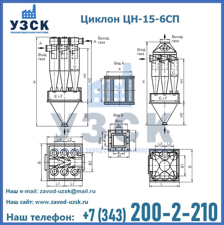 Завод «УЗСК» в Оренбурге предлагает большой выбор циклонов ЦН-15-900×6СП и прочих устройств, полностью укомплектованных и готовых к эксплуатации. Мы гарантируем соответствие оборудования всем требованиям ГОСТ и ТУ, износостойкость и высокую производительность предлагаемого оборудования. Уральский Завод Стальных Конструкций изготавливает и продает надежное, эффективное и производительное оборудование, имеющее длительную гарантию и большой эксплуатационный ресурс. Если требуется изготовить циклон нестандартных размеров, то такой вариант выполнения заказа тоже предусмотрен, так как предприятие имеет собственные производственные площади и надежных поставщиков. На все поставляемое или производимое оборудование имеются чертежи и прочая техническая документация. Заказать и купить циклоны или прочее оборудование высокого качества и по доступной цене можно через наш сайт или по указанному в разделе «Контакты» телефону.