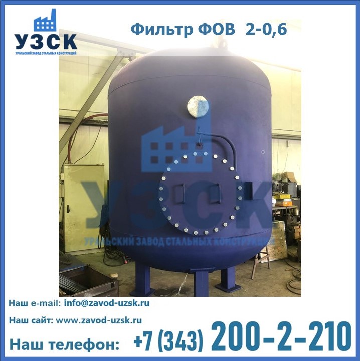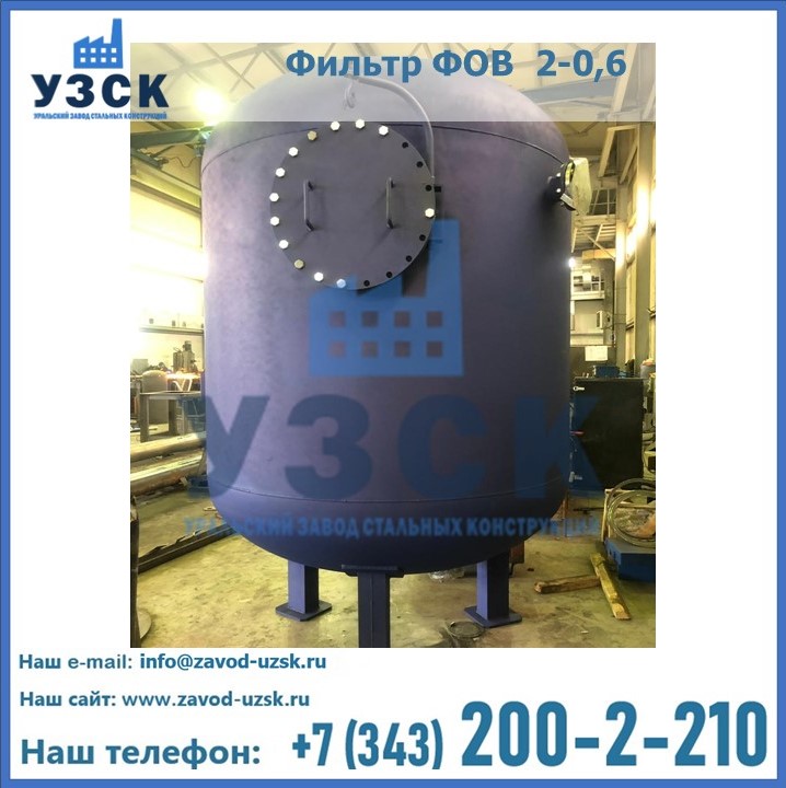 Удаление взвешенных веществ различного уровня дисперсности из рабочих жидкостей эффективно проводит фильтр осветлительный типа ФОВ (скорый или механический) — вертикально-цилиндрической формы установка, разработанная для систем водоподготовки различного класса. Оборудование представляет собой однокамерный агрегат для очистки воды рекомендованный для применения на станциях очистки стоков, в коммунальных котельных, на ТЭЦ, в промышленных отопительных системах и пр. Заказать производство ФОВ фильтров предлагает наш Уральский завод стальных конструкций в Оренбурге. У нас можно купить фильтрационное оборудование различного класса и типа, в том числе фильтры ФОВ из нержавеющей стали.