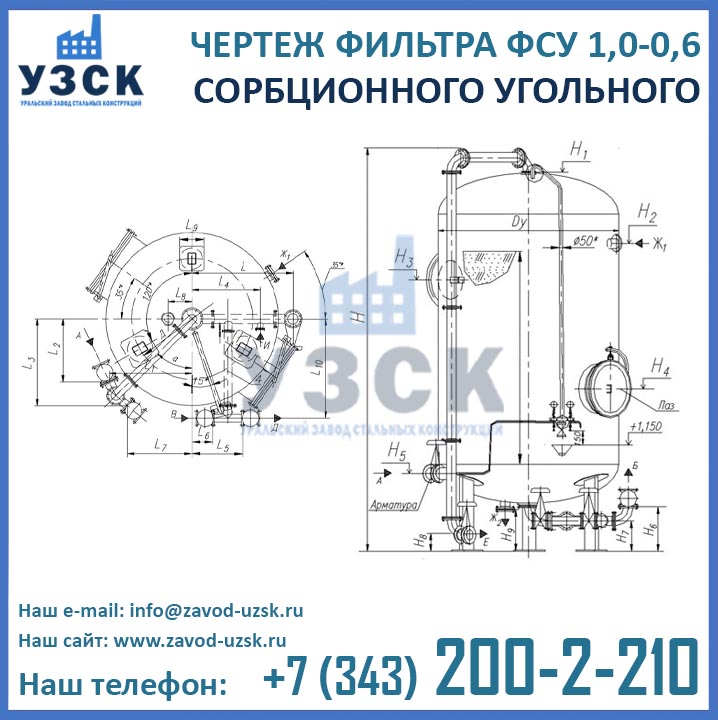 Наш завод (Уральский завод стальных конструкций) является производителем угольных фильтров, сам осуществляет изготовление и реализацию выпускаемой продукции. Приобретая фильтры ФСУ-1.0-0.6 в Оренбурге от производителя, Вы приобретаете оборудование без наценок всевозможных посредников, а также значительно экономите свое время. Фильтры ФСУ1.0-0.6 завода УЗСК – это гарантия качества, кратчайшие сроки изготовления и цена, которая Вам понравится.