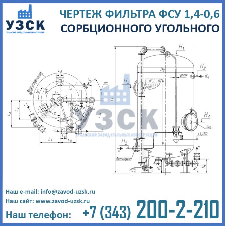 Если вы ищете фильтры ФСУ-1,4-0,6 в Оренбурге от изготовителя, то Вы на правильном пути! Уральский завод стальных конструкций – непосредственный производитель сорбционных фильтров ФСУ, предлагающий самые выгодные цены на ФСУ-1.4-0.6 в Оренбурге. По окончании процесса производства угольные фильтры проходят гидравлические испытания пробным давлением 0,9 МПа на аттестованном гидростенде, находящимся в собственности завода УЗСК. Мы гарантируем высокое качество выпускаемой продукции, и в этом уже убедились ведущие предприятия промышленного сектора России и стран ЕАЭС (см. раздел «Наши клиенты»).