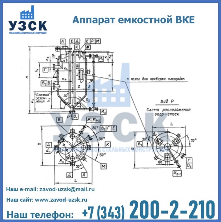 Емкостные аппараты ВКЭ представляют емкость с эллиптической крышей и коническим днищем. аппарат может использоваться в Оренбурге для приема и хранения жидкостей и взрыво- и пожароопасных веществ. Создаваемое давление не должно превышать 0,6; 1,0 МПа. Емкости ВКЭ выполняются как цельносварные. Используется марка стали, отвечающая степени агрессивности продукта и температуре эксплуатации.